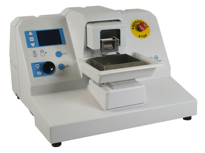 To facilitate the careful slicing operation, it is most important that the progress of the blade through the tissue be clearly observed. This observation is used to ensure control of the speed of advance and of the oscillation of the blade. Two elements are required for clear observation, light and magnification.